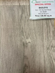 including IVC Special vinyl colour: T94 Burnt Wood, fitting labour, recommended adhesive, sealant, 1 new door bar and uplift/disposal of existing flooring (vinyl).